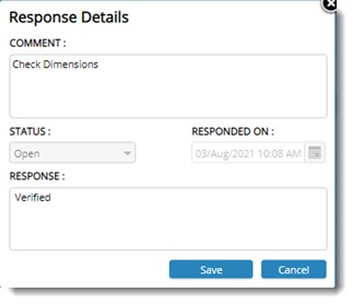 - Response added successfully message is displayed. Entered response is displayed in grid against the corresponding comment.