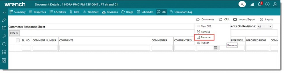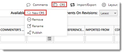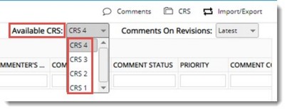 - In the CRS window toolbar click Comments. A menu is displayed.