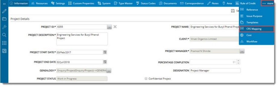 - In the Project Properties window click More and in the menu click CRS Mapping.