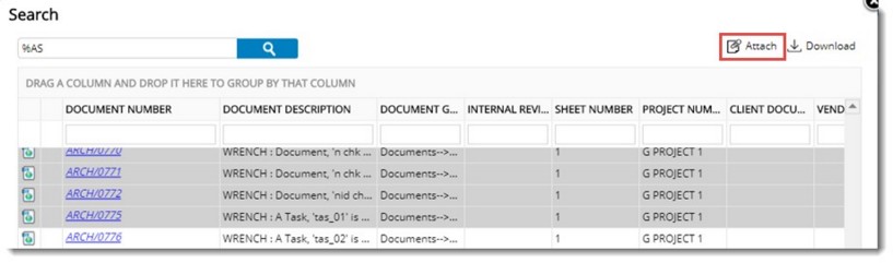 Figure: Selecting documents from Wrench
