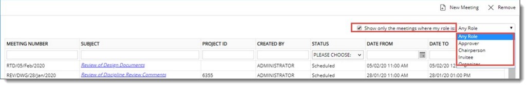 If the checkbox is not selected, then option Any Role is selected by default, and all the meetings are displayed.