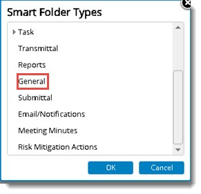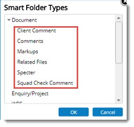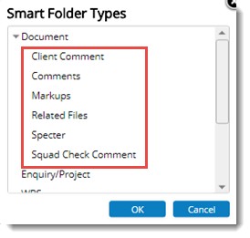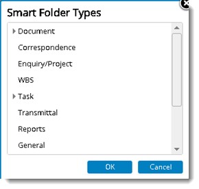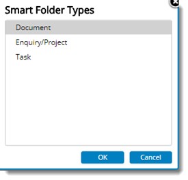 - Smart Folder Types window is displayed. Only folder types Documents, Enquiry/project and Task is displayed here. Select a folder type.
