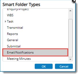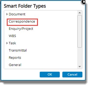 - Smart Folder Types window is displayed. Select the folder type as Correspondence and click OK.