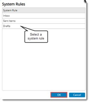 - System Rules window is displayed. Here system rules corresponding to the selected folder type is displayed. Select a rule and click OK.