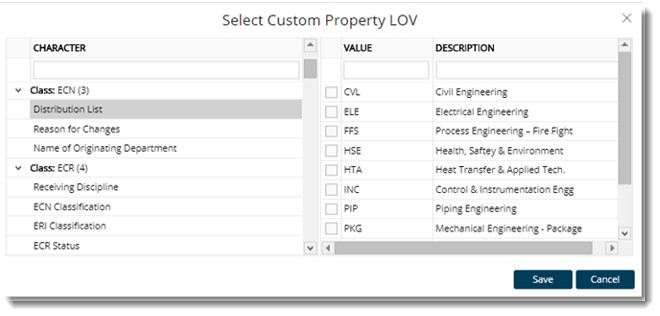 - Select the checkbox next to the values that you want to assign to the Custom Property for the selected folder.