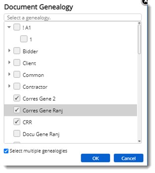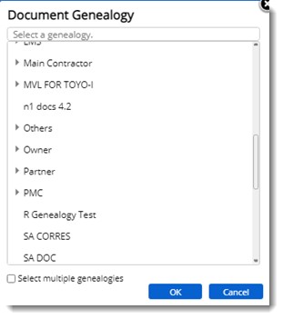 Select multiple genealogies: If multiple genealogies are to be selected, click the check box next to the option Select multiple genealogies. Checkboxes are displayed next to the folders listed in the window.