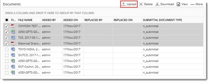 Documents already added to the submittal can be replaced by another document.