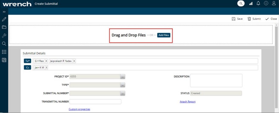 Figure: Adding files to submittal