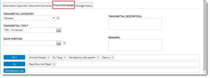 Document controllers have the responsibilities of post approval processing of packages such as releasing transmittals etc. Each package can be assigned with multiple document controllers.