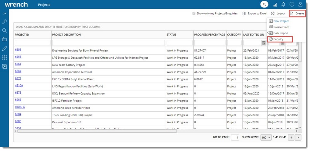 Enquiry module handle the enquiries prior to the award of a project. This may include enquiries related to technical feasibilities, deliverables of the project etc. Projects corresponding to the enquiry can also be viewed.