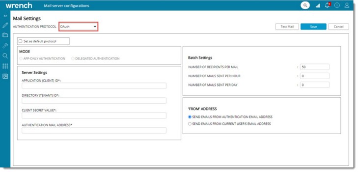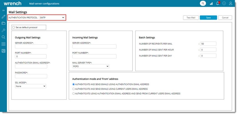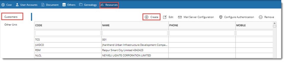 Customer details primarily associated with work orders are managed here. Along with basic details such as name, address etc., configuring authentication and mail server configuration is managed from here.