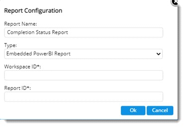 If the type selected is Embedded Power BI Report, the following window is displayed.