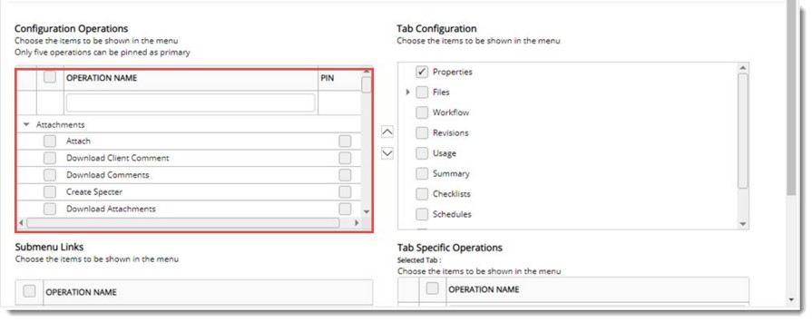 - Select the check box next to the operations that are to be displayed in the sub-menu.