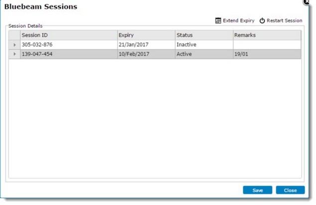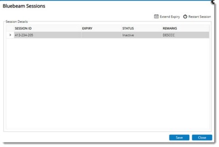 Click this option to view the live commenting status. On clicking this option Bluebeam Sessions window is displayed.