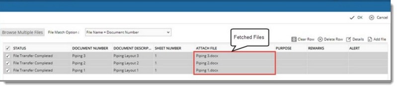 File Name of the selected files, Status and Attachment Type is displayed in the grid.
