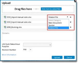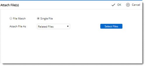 The selected files can be attached as Related Files, Markups or Comments. This can be selected from the drop-down list next to Attach File As.