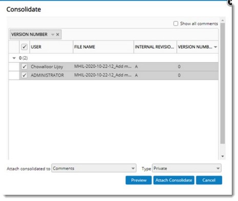 Comments entered by different reviewers in the attachment have to be consolidated to one single comment file. Consolidate Comments option helps you in carrying out comment consolidation.