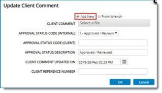When attaching consolidated comments in locations other than Client Comments, association purpose will be Consolidated file automatically. When consolidated comments is attached in the tab Client Comments, consolidated comment is added as a new WRENCH document.