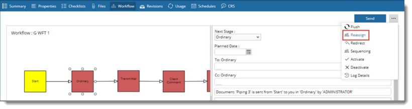 Using this option you can remove users from workflow stages and assign a new user to workflow stages.