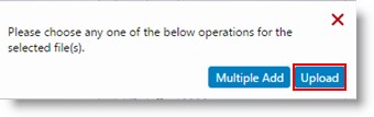 In the bulk update window after selecting the documents to upload and successfully uploading the documents, the following message is displayed.
