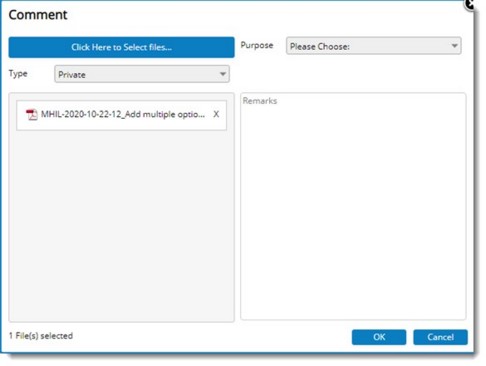 In some scenarios when comments of multiple documents are made in a single file, it is required to attach the same file to all the selected documents If only a single file is to be attached select the option Single File.