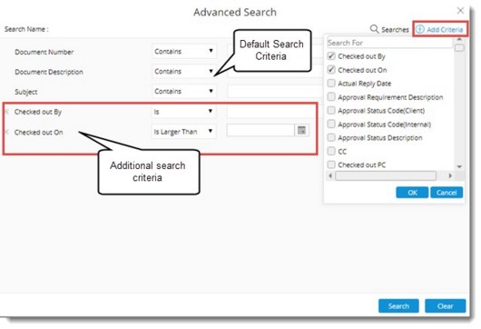 Search results can be further filtered using additional search criteria. Many document properties can be used as search criteria. You can select the document properties based on which the search results have to be filtered.
