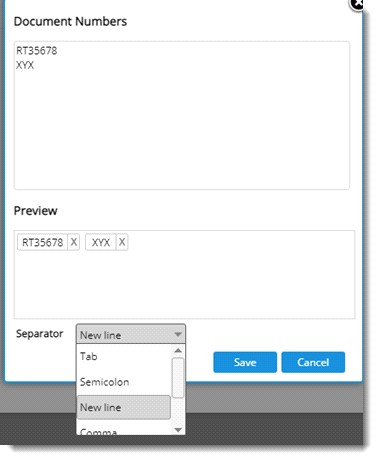 On clicking the button, a new window is displayed. Paste multiple document numbers in the window.