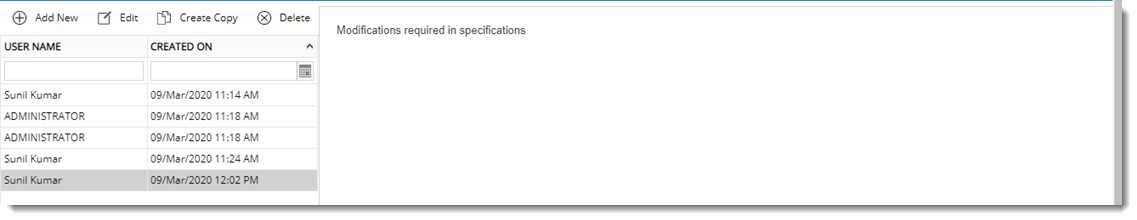 Entered Remarks is displayed in the window. Latest created logs will be displayed at the top. On clicking the Sorting icon in CREATED ON column, entries will be sorted in ascending order and descending order.