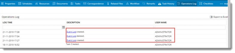All the event log operations will be displayed in the Operations Log tab of the Task Details window.