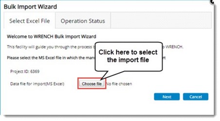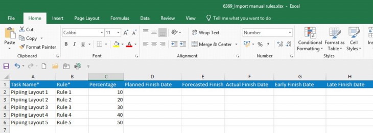NOTE: If the task name entered in the template is not matching with task names inside WRENCH, then a warning message is displayed, and the import operation fails.