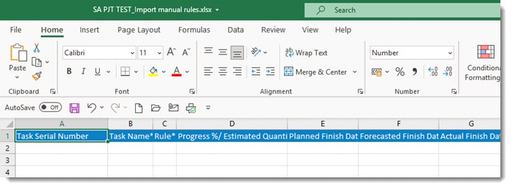 On importing the rules, system will check whether ‘task name’ and the ‘task serial number’ combination matches with the data present in the WBS. If it matches, manual rules are imported against the corresponding tasks and rules are created successfully. If Task name and Task serial number combination does not match with the combination in the WBS data, then a warning message Invalid Task name and task serial number combination is displayed.