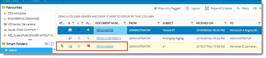 A new column FLAG is displayed in the smart folder grid. Against the flagged items, a flag symbol is displayed in this column. The column containing the flagged item is highlighted in yellow colour.