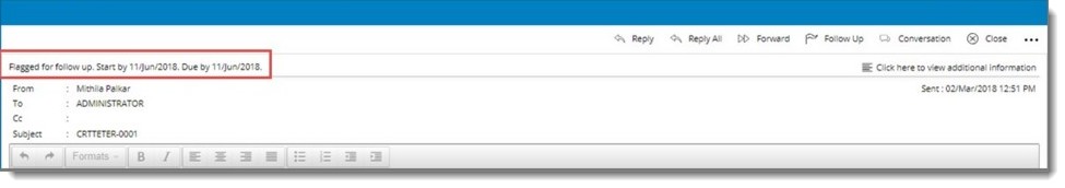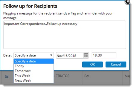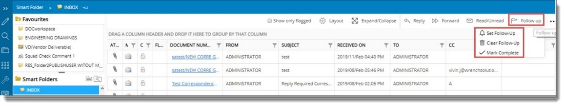 WRENCH provides an option to follow up the correspondences by flagging them. By flagging email messages, you can track responses to messages that you send. You can also make sure that you follow up on messages that you receive.