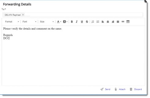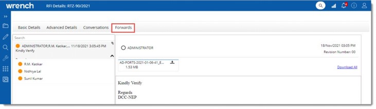 In some cases, if the recipient wants to get clarification from resources not in the recipient list, they need to use correspondence or other communication channels. To handle this, a facility to forward the RFI to the respective resources is available.