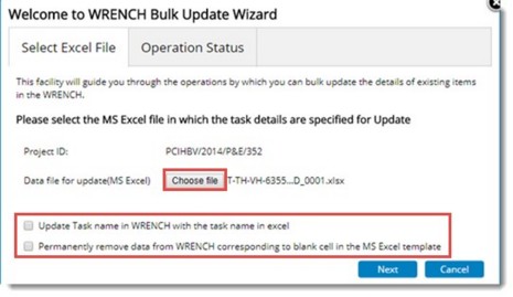 - Update task name in Wrench with task name in excel: On selecting this option the task names in Wrench are replaced by the task names in excel. If this option is not selected any changes are not made to the tasks.