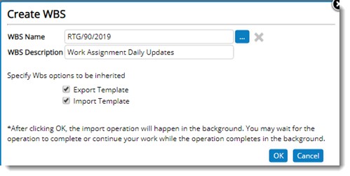 Import Template: If the checkbox next to this option is selected, all the import templates of the source WBS will be inherited to the target WBS. If no selection is done, no export templates will be inherited.