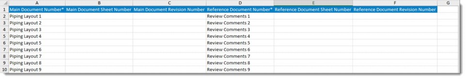 - Click Finish to complete the operation. If all the data in the excel file is valid, the main document will have the specified document attached as a reference document.
