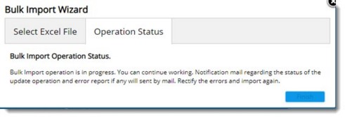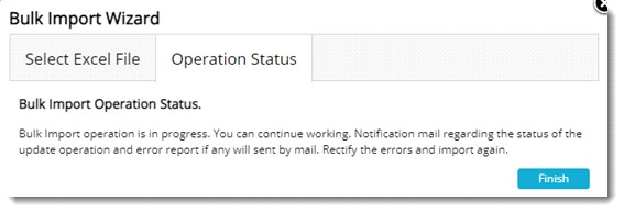 - After selecting the file on the Bulk Import Wizard, click Next. Information on status of the bulk import operation is displayed.