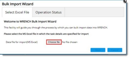 Bulk Import Wizard is displayed. The MS Excel file in which the task details are specified is selected here.