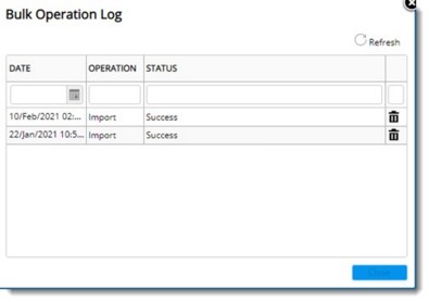 NOTE: When the import operation is successful, the status column in the bulk operation log will display as ‘Success’. During the import operation, when the import fails, an error report is generated. The error report can be viewed by clicking the hyperlink ‘Download Error Report.
