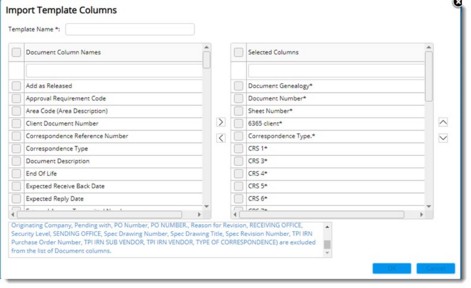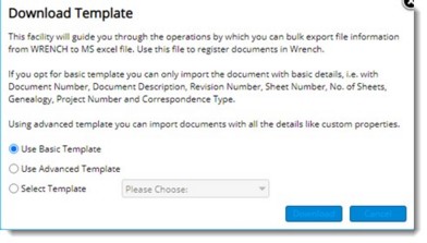 Use Basic Template: This option is selected by default. If this option is selected, a template is generated with basic document properties i.e. Document Number, Document Description, Revision Number, Sheet Number, No. of Sheets, Genealogy, Project Number and Correspondence Type.
