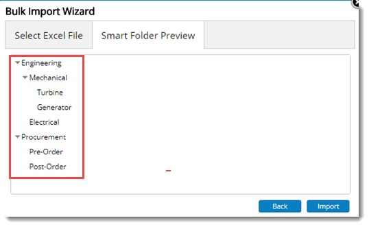- Verify the preview and click Import to import the smart folder structure.