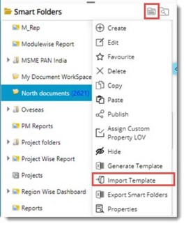 - Smart Folder menu is displayed. In the menu click Import Template.