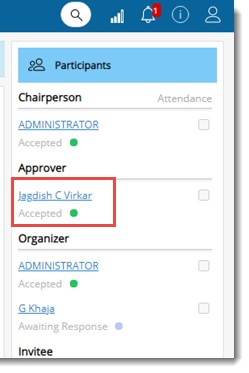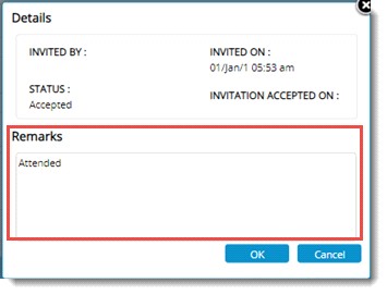 Once a participant accepts an invitation, Invitation Status changes to Accepted and the checkbox next to Attendance can be clicked as shown in the following figure.