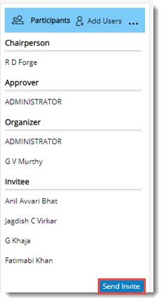On clicking Send invite, notifications will be sent to participants who are not invited yet. Notifications will be available on the notifications panel as shown in the following figure.