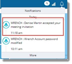 Once a participant accepts or declines a meeting invitation, the organiser receives a notification in notification pane as shown in the following figure.