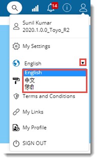 In the user information menu, option to select a language will be displayed. By default the language displayed is English.