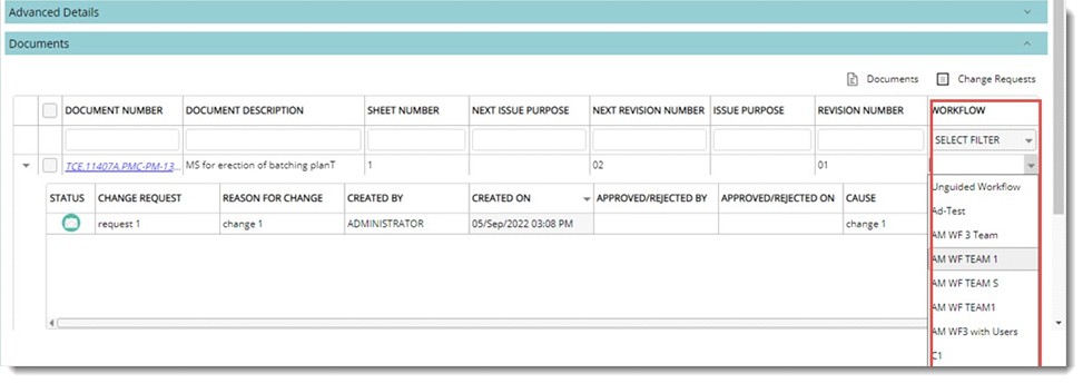 When the Change Proposal is approved, it may be required that the latest revision of the document be sent through a specified workflow. Workflow details of the revised document after the CP is approved, can be specified from the column Workflow.