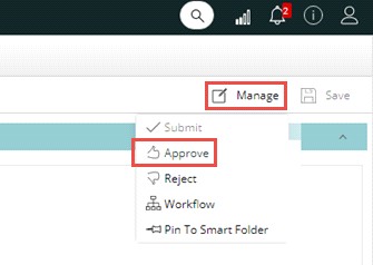 - In the Manage menu click Approve.