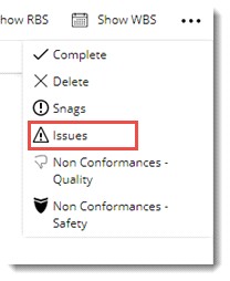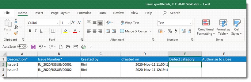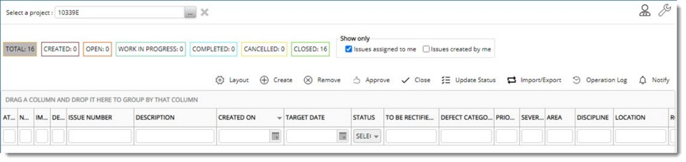 Issue List window is displayed. In case already Issues are created for the Project, details of the Issues are displayed in the window.